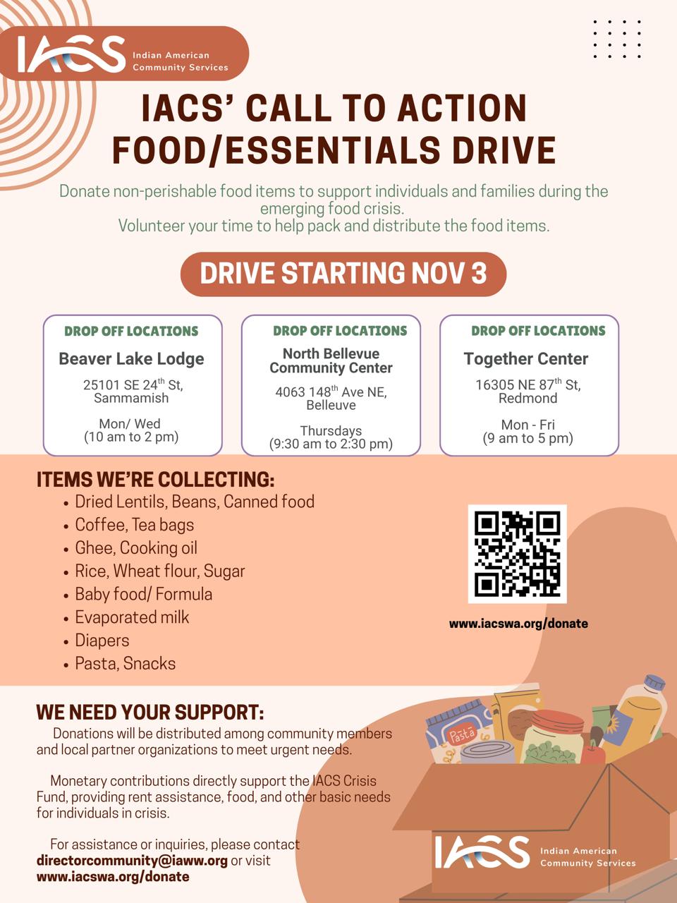 In the last month, IACS collected close to 750 pounds of canned, ready to eat food and produce that was distributed to Saathi, Hopelink clients, and clients at the North Kitsap Recovery Cafe. Sadda Bazaar is a continued effort to provide food and essentials support to families that face crisis and food insecurity.